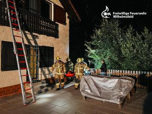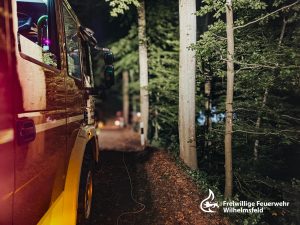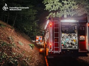 Das angenommene Szenario: Brand im Keller, drei Personen vermisst. Die Feuerwehr Wilhelmsfeld wurde zunächst zum Bereitstellungsraum Ursenbacher Hof alarmiert, kurz darauf ging es weiter zur Hütte. Dort übernahmen wir die Wasserversorgung aus unserem Hilfeleistungslöschfahrzeug (HLF), gemeinsam mit dem Tanklöschfahrzeug (TLF) der Feuerwehr Altenbach sowie über eine vorhandene Zisterne. Außerdem leuchteten wir die Einsatzstelle mit unserem Lichtmast aus. Ein Angriffstrupp unserer Wehr ging unter Atemschutz zur Brandbekämpfung und Personensuche in den Keller vor. Insgesamt waren fünf Fahrzeuge und rund 25 Einsatzkräfte beteiligt.